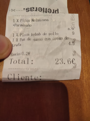Ayer me arriesgué en pedir a domicilio en un sitio nuevo por probar. Vi muy buenas reseñas de esta pizzería y no entiendo nada. Algunos decían que era la mejor pizzería de Málaga (yo alucino!). Para empezar la pizza de pollo asado, jamón Serrano y champiñones llevaba pimiento en lugar de champiñones (ya podéis corregir ese error en vuestra carta de just Eat). De todas formas eso es lo de menos. Es una pizza de 10.90€ (no merece la pena ni aunque cueste 5€) con dos minúsculos trozos de jamón y dos de pollo. Es prácticamente una pizza Margarita. Pero lo peor es que apenas trae queso ni tomate. Era casi comerse la masa seca, que por cierto, muy artesana y lo que quieras, pero nada del otro mundo. No he probado una pizza más triste en mi vida, y yo soy muy conformista, es raro que pruebe un sitio y no me guste mínimamente, pero es que esta pizza era un timazo absoluto. Me sentí completamente estafado. Y aparte una empanada Argentina de 2.2€, una miniatura de empanadillas de gorgonzola y pera que no sabía a nada, creía que venía hasta vacía. Por lo tanto, no entiendo tantas reseñas positivas. Entiendo que haya gente que todo le parezca bien, pero aquí tiene que haber muchas opiniones falseadas. No puede haber tan pocas negativas vista la nula calidad de todo, y vuelvo a decir, es raro que algo me decepcione tanto, porque si no es una gran pizza, al menos será comestible,...