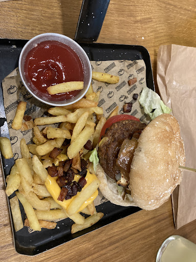 After first sitting down, crumbs were noticed on my seat and around the table which was not a massive issue but was not great. Service was very good and the person serving us was very patient with us as we spoke English and they spoke Spanish, however was not an issue as we got the food we wanted. Around €32 for 4 people to have a drink and main meal, so it’s good value. ordering the burger, the quality was okay, what you’d expect for the price.