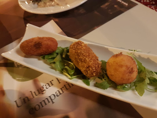 Read moreSitio estupendo para tomar algo. Platos muy elaborados y con muy buen sabor. Pedimos los siguientes platos: Una ración de patatas bravas, nos costó 8'50 €, estaban muy ricas y eran BRAVAS, auténticas bravas, picaban como debe ser. También pedimos para probar una croqueta de cada tipo: jamón, gambas al pil pil y boletus. Cada una costaba 1,30 €. Todas estaban deliciosas pero me quedo con la de gambas al pil pil. Quizás el precio de la croqueta es algo elevado, por ese precio que menos que entren dos!! Otro plato que pedimos fue el de fideos negros tostados con langostinos. El precio del plato es de 9 €. Para ser sincera fue el plato que menos me gustó. Esto no quiere decir que estuviera malo, para nada. Estaba rico, quizás algo seco. Para nosotros el plato estrella fue el de pan baho al vapor relleno de rabo de toro, cebolla, lechuga y salsa curry. Estaba delicioso!!! Me comería 100!!! La ración cuesta 9 € y trae dos. De carne pedimos presa ibérica de bellota con salsa de mostaza y creo que llevaba puré de batata y patatas fritas. Este plato también estaba riquísimo. El precio del mismo es de 15€. Para terminar elegimos dos postres que nos encantaron. Uno fue la pantxineta con helado de leche merengada y otro la tarta de queso con mermelada de frambuesa. Cada postre cuesta 5'20 €. Los dos muy ricos y buena cantidad. El pan rico y calentito. Los camareros muy amables y atentos. El servicio rápido, eficiente. Buena...