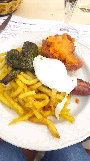 Las croquetas estaban muy ricas (los dos tipos), creo que es lo único salvable de lo que probé. Probamos los callos y eran muy muy mejorables: sosos y los garbanzos no estaban lo tiernos que deben estar, el caldo no era meloso, como debe ser el de unos buenos callos. La tosta de presa con queso tampoco la pidan, tenía un sabor muy fuerte. El plato de los montes deja mucho que desear: las patatas fritas - como se puede ver en la foto - no están bien fritas, el chorizo es minúsculo, el lomo es tamaño familiar (demasiado para mi gusto), la yema tenía una parte cuajada. En definitiva, es un plato que no tiene ninguna dificultad, es su especialidad, y tenía muchísimos defectos. Por último, de los postres, probamos el de queso y el de turrón. El de turrón estaba muy bueno, el de queso se lo pueden ahorrar. Las copas, a precio de discoteca del centro. Los precios en carta son populares pero la cuenta sube con el precio de las cervezas. Al final, la cuenta no sale muy económica para haberte ido a los montes a comer papas, huevo y chorizo. No entiendo cómo puede tener tan buena nota. Por cierto, había que estar continuamente detrás del servicio para pedir más bebida, creo que deberían estar más atentos.