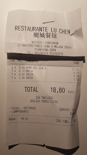 Read moreRestaurante chino con una amplia carta en la que encontramos alrededor de un centenar de platos, en la línea de la mayoría de restaurantes de este tipo. Además podemos elegir entre una infinidad de menús, que van desde los 7,45 € hasta los 54,50 € de un menú para siete personas, con muchas opciones intermedias. Los precios son bastante baratos y la atención un tanto distraída, ya que tienen muchos pedidos para entregar a domicilio y se encuentran muy entretenidos con ellos. Acudí para comer y pedí sopa de tomates con huevos y un plato de mariscos salteados. Con una cerveza, una cuenta de 9,75 €. Muy buen precio y la comida no estaba nada mal; si no le otorgo la máxima puntuación es únicamente por el alboroto con los pedidos a domicilio, que hace que la atención no sea tan rápida como...