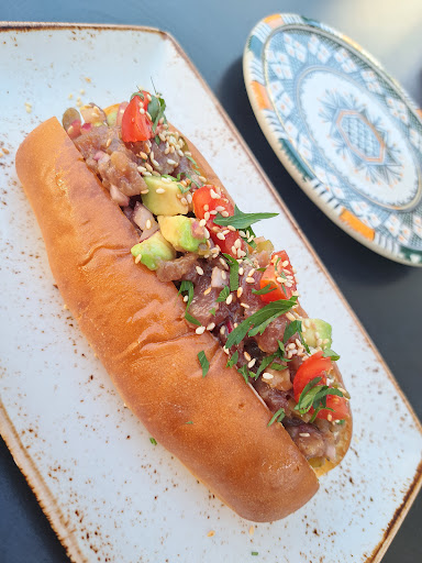 Read moreGran fusión marroquí-brasileña. De este sitio se tiene que escuchar hablar en el Cerrado, tiene una terraza y un ambiente muy top😊. Queríamos probar media carta, tanto la cocina marroquí, como la mediterránea, como la brasileña, qué difícil😃. Nos decidimos por el brioche de atún rojo marinado con emulsión de aguacate y cítricos, buenísimo ❤️ Por recomendación de Helen, pedimos el pan de queso brasileño, muy bueno y contundente. Mi plato preferido: la pastela de pollo con almendras, ya la había probado en Mosaico del centro, qué rebuena🥰. El tajín de pollo al limón 🍋 buenísimo ❤️ Terminamos con una tarta de queso y dulces marroquíes, qué me gustan esos dulcecitos❣️❤️ Nos encanta su vajilla😃 💶💶Está muy bien de precio. Muchas gracias por la invitación 🥰 👩🏽🍳👨🏽🍳La camarera, una brasileña, tan boquerona de adopción como yo, Helen, es majísima y la propietaria del restaurante, Nezha, un encanto, gracias🥰 💐Su terraza es brutal❣️ 🎊Nezha comenzó con Mosaico, mi amado marroquí del centro y este del Cerrado, que lleva abierto 2 años...