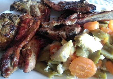 La Venta el Gato es un restaurante que se encuentra en el barrio malagueño de Jarazmín, al este de la capital, pero es casi como si te vas a la sierra cercana, casas bajas, rodeado de montecillos y muy verde. Es un restaurante muy clásico, del estilo años 70, sencillo y con una terraza grande para cuando hace buen tiempo. Tienen una carta interesante, con muchos platos tradicionales como la sopa de picadillo, callos, estofado, arroz en paella (la paella es el recipiente, un error que casi todo el mundo comete)… y los platos estrella que son de barbacoa. Si, encienden una barbacoa donde hacen los platos que puedes ver en la carta (entrecot, solomillo, brochetas…).También pedimos un plato montés con pimientos que es básicamente como las migas completas con lomo pero sustituyendo las migas por patatas fritas (lomo, chorizo, morcilla, pimientos verdes fitos, huevo frito y patatas fritas).