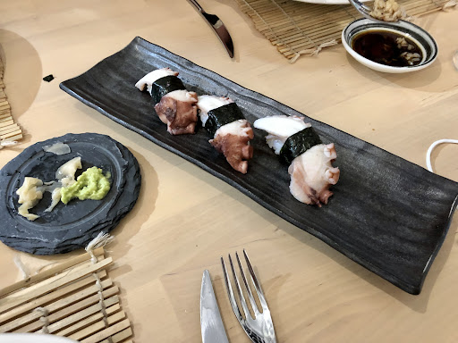This place is a hidden gem in a undistinguished neighbourhood not far from the airport. The place has a simple but effective decor , so you can focus on what really matters, which is the food. The carte has a mixture of classic Andalusian dishes and excellent Japanese style sushi. I had an amazing mini duck hamburger, the tako sashimi was to die for but the best was the hot tuna. It was so good we repeated it! We drank beer as it was a warm night so I cannot comment on the wine list. Well worth the visit ( easy access by subway from the main railway station) if you like authentic Japanese cuisine and want t o try a...