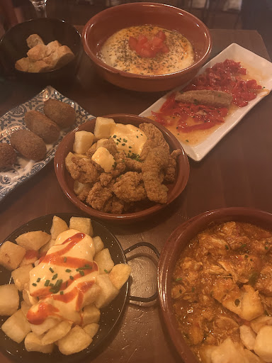 We enjoyed Ensaladilla Rusa, Camperito Jarana, Croquetas, Jamón Ibérico, Queso Viejo Puro de Oveja, and Pollo Picantón each one full of taste and beautifully prepared. The Verdejo was delicious and, on top of that, everything was amazingly affordable.