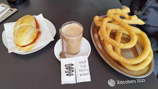 Read moreChurros bien hechos y jugosos. Todo el personal es fantástico, servicial y super amables. Un local espacioso de barrio, terraza cerrada para los que deseen fumar o tomar el fresquito. Los bocadillos son muy grandes y bien rellenos, el café espléndido y el chocolate... Mmmm. Tienen variedad de dulces, por si te apetece. Y el zumo de naranja está de lujo. Da gusto visitar sitios como este, en un barrio tranquilo, donde te reciben con una sonrisa y amabilidad. Definitivamente es super recomendable. Si visitas Churriana, no lo dudes ve a esta cafetería, no te decepcionará. P.D. si te gusta el Heavy y el Rock, allí tienes un fan de esos grupos que es una enciclopedia, sabe de todo y con mucha amabilidad te lo cuenta si le preguntas...