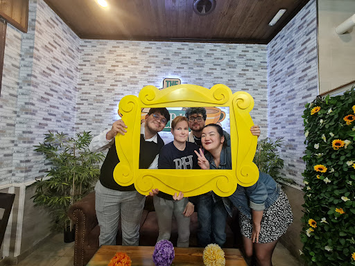 La cafetería está inspirada en Friends, pero realmente lo que tienen es un rincón decorado con algunos detalles, el resto de la decoración no tiene nada que ver. Para toda la publicidad que le dieron me esperaba algo más. Fui a desayunar y en ese sentido los precios están bien y la comida bien. Exceptuando el hecho de que cobran más por poner el café en una taza "grande" (que esperábamos que fuera como las de la serie Friends) y en realidad son tazas de tamaño normal. El servicio fue bueno y la camarera muy simpática. Otro inconveniente es que no tienen bebida vegetal. En conclusión, está bien como cafetería normal y corriente, pero si esperas (como nosotras) algo más rollo Friends...