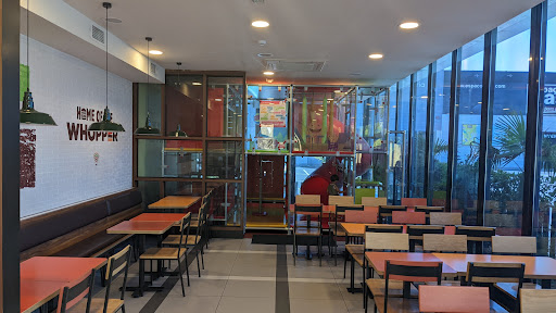 Paramos aquí después de 3h de viaje, esperando comer algo rápido e irnos, pero nada más lejos de la realidad. Entramos sobre las 14:30 y, como era de esperar, había gente hasta en la sopa; no pasa nada, es normal. Lo que no era tan normal era el charco de Coca Cola que te recibía nada más entrar y que estuvo unos 15 minutos ahí expuesto, no sé si a modo arte contemporáneo o qué, pero no entendí mucho el concepto ni el por qué nadie lo limpiaba, aunque fuera así con un cacho roñoso de servilleta, ¿sabes? Después de 5 minutos haciendo un tour por el "restaurante" en busca de una mesa, la conseguimos. Pedimos, y, la verdad que, siendo un restaurante de comida rápida, esperas que el servicio sea igual, pero estuvimos esperando 30 minutos a que nos dieran cuatro hamburguesas mal avenidas, unas patatas y una ensalada triste y acartonada, con sus respectivas bebidas. Pues ni eso consiguieron hacer en condiciones... Pedimos dos hamburguesas SIN pepinillos ni cebolla, y no sé si uno de los requisitos para entrar aquí a trabajar es no tener ni el graduado escolar, pero a sorpresa de nadie, venían CON. Yo es por capricho lo de no comer la cebolla y los pepinillos, pero hay gente que tiene alergias. Aunque haya mucha gente, deberíais aprender a leer o poneros un episodio de Barrio Sésamo en el que os enseñen la diferencia entre: CON y SIN. PERO ES QUE ESO NO ES LO PEOR. Es que la máquina de las bebidas no funcionaba y tenías que pedirle a los empleados que TE RELLENARAN EL VASO. HACER LA COLA Y QUE TE QUIERAN ATENDER PARA BEBER UN TRISTE VASO DE COCA COLA CON TRES KILOS DE HIELO. Lo mejor que pudimos hacer fue irnos, la verdad. Tuvimos una despedida brutal, con todos los restos de la comida tirados en el suelo y con el charco de Coca Cola reseco, que parecía eso el suelo de una discoteca a las 7 de la mañana más que un Burger King. Gracias por tanto y perdón por tan poco. ☠️ No volveré, gracias a Dios.