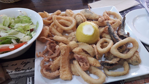 Read moreHe pedido para llevar una fritura y una ración de lagrimitas de pollo! La hemos recogido en el local y al llegar a casa nos llevamos la sorpresa, la fritura blanda y achiclada envuelta en un cartucho de papel totalmente abierto y empapado en aceite, seguidamente abro el otro cartucho este si estaba cerrado con una pegatina y las lagrimitas se me han caido a mi al verlas, casi churruscadas, parecian palos quemados! He llamado para quejarme y me dicen que lo sienten y que vaya otra vez para allá, le digo que me es imposible desplazarme otra vez y me dicen que lo sienten y listo! Muy mal el producto, el como lo presentan para llevar y la atención a mi queja pésima!...