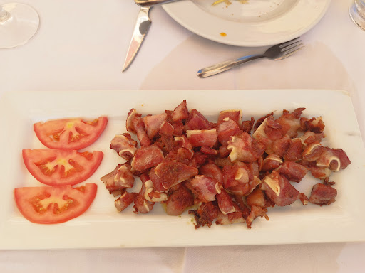 Casi toda la chacina ibérica proviene del secadero del Dueño por lo visto; por lo que la calidad es de máxima a superior, muy recomendable pedir morcón y el lomito, además del jamón ibérico de bellota evidentemente. La tabla de quesos de Extremadura es imprescindible pedirla, se te deshace en la boca. El precio es demasiado barato para la calidad que ofrecen comparado con algo parecido que cueste casi lo mismo.