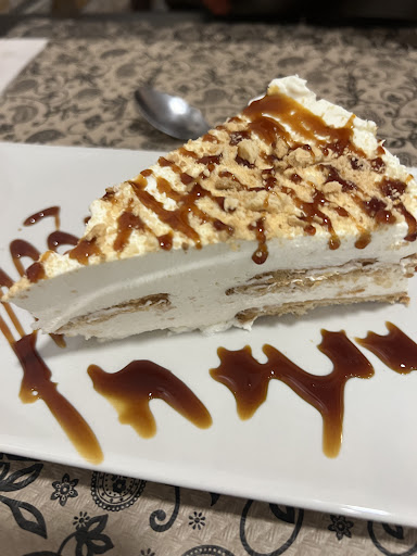-Postre: Un trozo de tarta de queso con la cantidad justa de dulce. Yo en lo personal odio la tarta industrial empalagosa, a rebosar de azúcar. Esta estaba genial Mi pareja escogió una tarta de serradura portuguesa, hecha a partir de nata sobre una base de galleta.