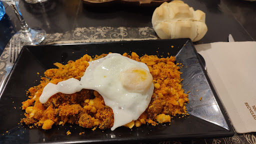 El restaurante es simplemente el mejor de Mérida ciudad. En resumen, trato espectacular, comida abundante y muy rica, si vas a Mérida es parada obligatoria. Veníamos recomendados al restaurante, aunque por las reseñas ya era muy bueno.. Reservamos para cenar (en la comida imposible) y pedimos vino blanco de la casa (verdejo), un vino muy bueno y de cosecha propia, muy recomendable (tanto, que nos llevamos 6 botellas). Cenamos dorado extremeño, si no sois de Extremadura, este plato es una mezcla de la prueba de la matanza, patatas paja, huevo revuelto (super rico), croquetas variadas, muy ricas había de cocido, jamón serrano y patatera (carne de la prueba de la matanza mezclada con patata), y, solomillo con torta del casar, de postre al decirnos lo que tenían, nos íbamos a quedar con la tarta de queso, pero mencionaron la tarta de serradura portuguesa y no nos terminaba de convencer pero el camarero nos retó a probarla.. Un grandísimo acierto!!!! Además nos regalaron un trozo de tarta de queso (salimos del restaurante rodando..). Tuvimos que repetir al día siguiente porque (además de ir a por el vino comprado) tanto el trato, como la comida era de 10. En la segunda cena repetimos las croquetas y pedimos tapas (las raciones son enormes) de migas extremeñas con huevo frito, muy ricas y ligeras, cazón en adobo (si eres de Andalucía o lo has probado allí, te va a resultar algo suave, pero estaba muy rico), y, carrilleras estofadas con patatas.. Sin palabras. Por supuestísimo.... Repetimos la tarta...