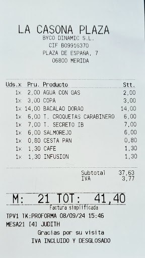 Dando un paseo por Mérida, en la Plaza de España, nos decidimos a entrar para cenar. El local es agradable y muy luminoso con una decoración sencilla pero que hace del lugar que sea acogedor. Nos decidimos por unas tapas. Bastante cantidad y con una buena relación calidad-precio, aunque eso sí, de una elaboración bastante sencilla y sin complicaciones. Al final, le comentamos a la responsable, que la milhoja de berenjena con jamón y tomate a la brasa, quedaría mejor si las hojas como el nombre indica fueran mas finas, ya que al ser las hojas muy gruesas no te da opción a disfrutar de la mezcla de sabores. Presentación, en este sentido, algo mejorable, aunque de sabor correcto, como las demás tapas. Presentación sencilla sin mucha elaboración y de sabor, como digo, correcto. La carne, en nuestro caso, un secreto, estaba hecho a la brasa y se apreciaba que el producto es de calidad y bien elaborado. El trato de los camareros y la encargada, muy correcto y atento, aunque al final, te quedas con esos pequeños detalles que sobresalen por encima de los demás. Había dos mesas y hacía las dos escuchamos decir, cuando acabaron si les apetecía un chupito cortesía de la casa, pero con nosotros no tuvieron ese detalle, algo sin importancia, pero que, como profesionales, es algo que se debe cuidar. Lo dejamos como un simple despiste y ya está. Sinceramente, todo correcto, pero no es el lugar en el que quieras repetir. Otro aspecto negativo, es que como postres, sólo tienen helados de cono o tarrinas. Quizás les falte algún postre elaborado o aunque sea industrial, pero tipo porción de tarta o algo así. Te vas con la sensación de que les quedan muchos detalles por mejorar, y más aún teniendo en cuenta el lugar donde...