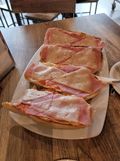 Read moreFuimos a primera hora, el sitio está muy bien puesto y las mesas son amplias (no es el típico sitio que tienes que quitar cosas de en medio para poner platos). Comimos dos tostadas (jamón y parisina) con un buen café y Colacao. Cuidado cuando digo tostadas. Tienen entera (pan de mollete que no cabe en un plato llano) , media del mismo pan y los cachos que es lo que ponen en un bar normal. Son muy atentos y TIP!! ENTRA EN EL BAÑO Y SIGUE LAS INSTRUCCIONES, EMPIEZA EL DÍA CON ENERGÍA,...