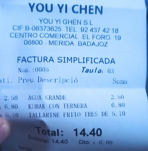 Read moreEl lugar está un poco escondido y tiene pinta de que sirven sobretodo comida para llevar por lo que el restaurante suele estar casi vacío, pero ellos no paran de mandar comida con los repartidores. Si os apetece ir a un sitio tranquilo es buena opción, también son muy rápidos y quiero destacar que son muy educados. También decir que me hubiera gustado que tuvieran puesta música de fondo, sé que es muy típico pero suele meterte más en la experiencia de estar comiendo comida asiática. Pedimos tallarines y kubak con ternera, estaba muy bueno y la presentación del kubak con el plato súper caliente siempre impresiona. El precio fue estupendo por la cantidad y la calidad. Hemos comido allí mi mujer y yo por menos de 15€ (sin postre) pero con el estómago lleno y disfrutamos de comida rica. No es un restaurante 5 estrellas pero hay sitios del estilo muchísimo peores y a nosotros nos gustó mucho, espero que les vaya todo bien, que vaya mucha gente y que el precio siga siendo así de asequible. Por 15€ no comes así de bien en un Burger.
