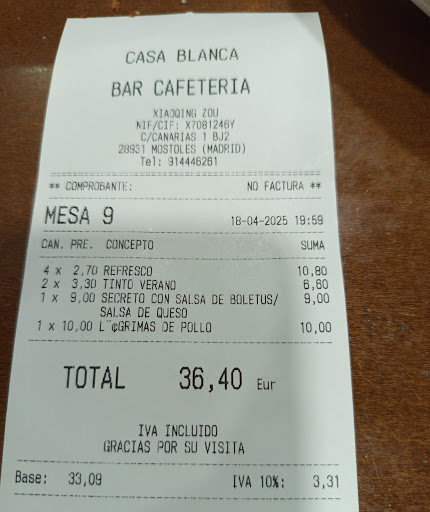 Ayer miércoles 17 de Abril 2025 Suelo ir todos los fines de semana, porque es un lugar agradable por los dueños y camareros/as Pero ayer......"vaya" vamos a tomar algo y todas pero todas las mesas reservadas Preguntamos y nos dicen que si, que está todo ocupado por el fútbol, pues nada nos vamos Pero SORPRESA , Está mañana me encuentro con un conocido y hablamos de todo un poco y le comento que ayer imposible tomar algo en "casa blanca" todas las mesas ocupadas..........y me dice NOOO , nosotros fuimos y si es verdad que tenían puesto el cartel de todo reservado , pero yo no tenía reserva y nos dieron una mesa Y encima me dice "si las reservan todas y luego se la dan a quien ellos quieren" Pues nada otro cliente que han perdido y todas las buenas referencias que le dábamos a todo el mundo, se acabaron Con esas prácticas ahora todo encaja De la gente que solía ir , creo que quedamos dos Pues nada que les den...