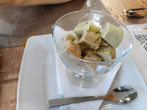 Ganas de experimentar algo nuevo.Restaurante reabierto hace muy poquito. Empezamos con unos entrantes(paneer &veg rolls). Son unos palitos de queso y vegetales que con unas salsas estaban deliciosos.seguimos con Prawn Biryani y con Murg tikka masala. Lo primero es un arroz basmati al horno con gambas aderezado con especias(como si no) típicas hindú, y lo segundo curry de pollo,tikka con especias preparado al estilo punjabi con nata y yogur.Para acompañar todo este menú Garlic Nan (que es un pan de ajo muy rico), y unas cervezas también hindús. Los postres ; pistacho Kulfi y Gulab jamun. Lo primero es helado de pistacho casero,casero. Y lo segundo unas bolitas de leche frita en almíbar que te quitaban el sentio......La verdad, disfrute mucho con la comida, descubrí sabores increíbles.Puedo decir que me lo pase .....también agradecer a Sody su gran amabilidad en el trato y en el asesoramiento a un profano en esta gastronomía. El precio es a mi entender justo , normal , creo que sí te vas satisfecho ,pagas sin dudas. Os lo recomiendo, hay muchos platos y sabores que descubrir. Yo...... Sin...