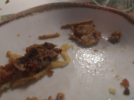 Read moreLamentablemente tengo que decir que no nos gustó nada este sitio. Fuimos por las buenas reseñas pero fue una tremenda decepción. No alcanzo a entender cómo tiene esas puntuaciones tan altas. La localización buena no es, pero es lo de menos... aunque sí se aparca bien. El personal es correcto y amable, pero están muy verdes... si bien éso lo arregla la experiencia. El local tiene una bonita decoración pero hacía calor pese al aire acondicionado y es oscurísimo, hasta el punto de necesitar dos lamparitas de mesa para ver lo que comes. Voy al lío. Las croquetas de chipirón no sabían a nada y no eran muy cremosas. Las patatas bravioli cumplían expediente por las patatas porque las salsas, sin estar malas, eran de bote, nada de caseras, pero fueron lo mejor de todo. El plato estrella, el cachopo gigante relleno de jamón, queso y trozos de palillos... sí, varios de ellos nos encontramos... demasiado tostado... de hecho es que sabía a aceite demasiado usado -algo tapaba el gratinado, pero poco- y x tanto algo requemado, empanado excesivamente grueso y carne muy muy muy seca, no se salvaba un trozo. Ni siquiera el jamón o el queso, del montón pero comestibles, lo salvaban. Y para redondear la experiencia pensamos resarcirnos con los postres, perooooo no, no hubo suerte, no quedaba ni uno solo de los tres postres que pedimos... sólo quedaban los tan manidos coulants, brownies, helados... que decidimos no tomar. En fin, no puedo recomendar nada este sitio. Si no se es muy sibarita y no se ha comido un buen cachopo en la vida, lo mismo es pasable, porque sólo a eso puedo achacar tan alta puntuación. O un terrorífico día, que puede pasar, pero fueron muchas cosas...Eso sí, el precio es contenido.. menos mal... unos 25 euros por persona si vas...