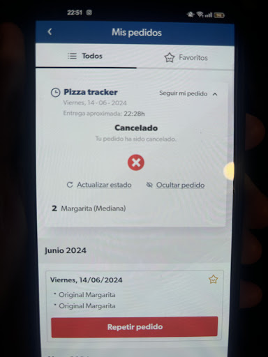 Read moreCliente habitual desde hace años, pido una o dos veces incluso a la semana. Siempre he estado contento y no he tenido pega. En el ultimo mes las pizzas correosas, frias... Lo pasas por alto. La vez siguiente configuras tus pizzas y te las traen como les parece y encima una de ellas ( no se si se les habria volcado) parecia un revuelto encima del pan. Lo pasas por alto. Y el dia que llegas de tus vacaciones pides de camino para que te lo sirvan a una hora en concreto, como suelo hacer de costumbre. Y al cuarto de hora me llaman para decirme que estan en casa. El repartidor que el no me soluciona nada. Que llame. Llmo central y me dicen que ellos no pueden hacer nada, que me intentan pasar con tienda. Despues de casi 10 minutos no pueden contactar con la tienda, que lo solucione yo con wl repartidor, sugiriendome que me coma las pizzas frias!? No se...por fin contactan con mi tienda y me dice que yo soy el culpable porque he hecho mal mi pedido. En fin una, dos, tres veces, delegais en mi vuestro problema con el pedido y en vez de soluvionarmelo...lo primero es que el problema es mio. Cancelo el pedido y me llama a los dos minutos un tipo muy gracioso y altanero que me dice q despues de 20 minutos tocandome las narices...no pasa nada, se hace un pedido nuevo y me traen mis pizzas nuevas ñ, le contesto que faltaría mas. Si le parece me las trae frias deapues de una hora y su contestación es que es que la culpa es mia que hice mal el pedido. Evidentemente las pizzas se las van a comer ellos estas 3, y las futuras que no pienso hacer. UN CLIENTE FIJO Y HABITUAL QUE PERDEIS...