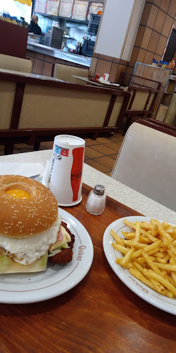 Read moreCalidad-precio perfecta. Lugar ideal para comerte una hamburguesa súper completa, buena y por poco dinero. De hecho la hamburguesa de pollo no es el típico nugget gigante que te ponen en otras franquicias sino que es un pedazo filete de pollo empanado y enorme que hasta sobresale del pan. El típico que te parte el pollero para que tú te lo hagas en casa rebozado. En cuanto a los platos combinados hay de varios tipos,los hay de carne y pescado y con una muy considerable racion. Y las tortitas son en mi opinión la joya de la corona del restaurante. En cuanto al menú lo tienen completamente elaborado en fotos en el frontal de la barra por lo que es fácil saber qué compone cada plato. Hay opciones para vegetarianos. Tienen comida para llevar pero no servicio a domicilio.Tanto la terraza como la sala son de método autoservicio. Los platos y los cubiertos no son desechables son de loza y metal por lo que uno de los camareros siempre está pendiente de recoger la mesa y prepararla para el siguiente comensal lo que ahora garantiza limpieza Covid. En todo momento puedes ver cómo te están preparando la comida. Son super rápidos atendiendo y preparandola, de hecho hay camareros que llevan toda la vida. Se admite efectivo y tarjeta para cargos bajos tambien (yo he pagado por ej 5.7 euros con ella).