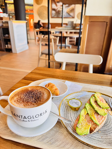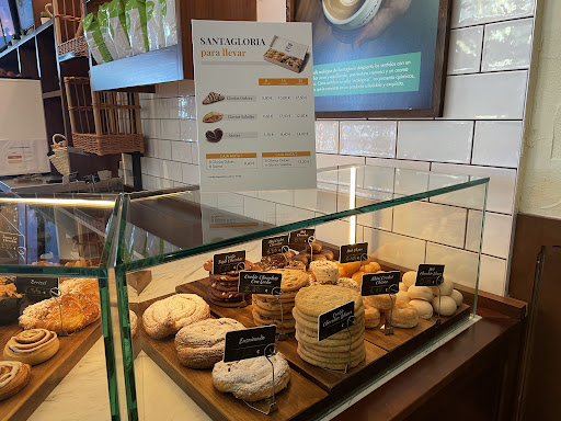 Desastre de camarera. Es una pena que un sitio tan bueno tenga una persona tan poco cualificada. Fui el viernes por la tarde para tomarme un café y algun bollito y tuve que irme con las manos vacías. El local estaba vacío, salvo por una clienta que estaba pidiendo un café con leche. Ya de primeras, y en mal tono, cuando me acerque al mostrador, la camarera (una de pelo oscuro) me dijo que me formará frente a la caja para hacer el pedido. Recalco que solo había una clienta que había pedido un café con leche. Y es que tardó en poner un café (un simple café con leche, ni capuchino, ni vienés, ni bombón, ni nada parecido, solo un café con leche) 11minutos de reloj... No exagero. Debería haber grabado un vídeo o algo, porque fue de risa. Como tardaba tanto, me moví un poco de delante de la caja registradora para ver la bollería e ir eligiendo. Y en eso llegó otra clienta que también se puso a esperar. Y finalmente, la camarera atendió a la 2da clienta (la última que había llegado) antes que a mí. Según la camarera, porque me había movido de la fila!!! Y que si quería, que me volviera a formar para esperar. Repito. No había nadie!!! Solo la primera clienta que ya tenía su café, yo y la última clienta que acababa de llegar. Suerte que no soy una persona que se enfade y simplemente le dije "ah, vale, perdona" Y me fui a la cafetería del carrefour, que me atendieron estupendamente aunque ahí sí que tuve que hacer fila. Lo siento por otros dos chicos que hay trabajando en el Santa Gloria q alguna vez me atendieron, son majísimos y muy buenos en su trabajo. Pero se que los días que este esa chica no iré más. Que vergüenza,...