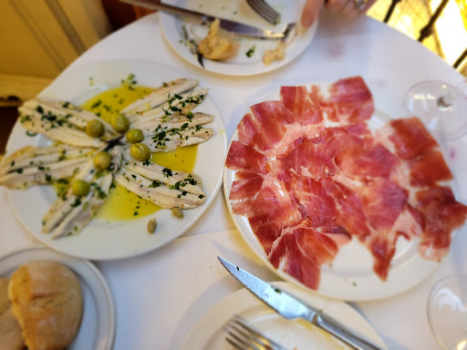 Read moreThis tiny bar and restaurant is a real gem. The bar downstairs, located just off a large square touristy square, is always full--not full in the horribly packed way--but because all 8 or so seats are taken! It's worth wondering by, and if you have some luck, you will experience an intimate, relaxed space with friendly, attentive service. The real treasures are the two balconies which perch above the street on the 2nd floor restaurant. Only large enough for a small table for two, each balcony is it's own little world. The service is spectacular and I enjoyed some of the best anchovies I've had in 5 weeks in Malaga. (I would stay away from the rabo de toro--I've had better elsewhere an it did not detract from an otherwise...