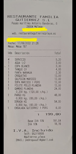 Read moreThe service was very poor right from the start. As we entered and were being shown to our table, one of the waiters stood there blocking our way chatting to someone on the phone, looking at us but ignoring us. He didn't seem to want us to go in but we didn't think anything of it at the time. He then took over from the waiter thay showed us in. When we started ordering, he told us that 80% of the things on the menu were not available that day. We asked for mullet and he said they didn't have it. Then he went back and forth to the kitchen several times to check which fish was available. He told us which ones were available. When we ordered those he then said they weren't available. Then he came back once more and said mullet was available. When it came it was horrible. The fish was small and not gutted properly. There was hair on the crockery. The waiters, about four of them, stood around and watched us eat and it really felt uncomfortable because I speak basic Spanish and could not understand but it seemed that we were the subject of their interest! Even if they wanted to talk about us they could have done it discreetly as I am sure other waiters do but not so brazenly! We didn't want bread so we asked them not to bring it. But they charged us for it anyway, calling it Servicio on the bill, in addition to the regular service charge which all Spanish restaurants put on the bill regardless. We ordered sea food salad which had mostly green peppers and octopus and a couple of prawns and very few tomatoes. It was okay. We ordered fried eggplant which smelt like fish and was soggy and oily and tasteless. And the mullet was as above also fried even though we asked for grilled in Spanish making sure he understood but he said they couldn't grill it. All in all an awful dirty place with dreadful staff and cook. Go there at...