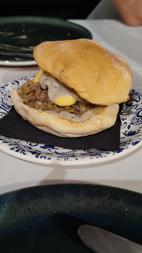 We embarked on a culinary journey, starting with the classic Bravas. We also indulged in the Hot Dog with mint, the Kraken Burger, and Gyozas with Rabo de Torro and a Foie Gras Sauce – all of which were absolutely delightful. The Hot Dog sparked a difference of opinion between us. I personally enjoyed the minty twist, but my girlfriend found it less to her liking. The standout of our initial order was undeniably the Kraken Burger with Pulpo/Octopus. While the octopus flavor wasn't immediately apparent, it was incredibly tasty.