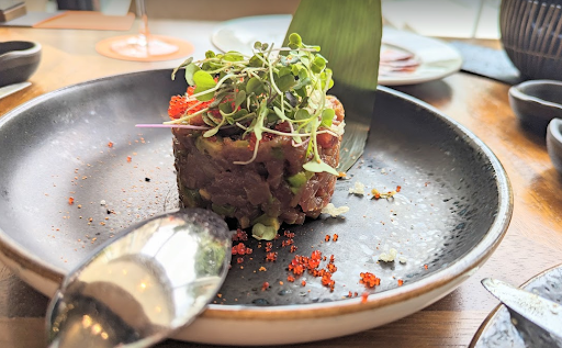 Read moreWow, what a disappointment :( We had high hopes for this attractive Antonio Banderas spot but they just missed on almost every level. I'll start with the service since it was so poor. The guy was nice but not attentive but the woman who served us was downright rude. I can speak passable spanish, especially with food but when I was ordering (you create a list on their app) she grabbed my phone from me to read what I wanted. She never smiled and also served us incorrect dishes after SHE took my phone to place the order. They never offered to refill our wine, gave us crackers from a bag (?), never offered to change our plates between dishes (I just ate fish, I don't want to eat beef from the same plate) and overall for such a well-reviewed place they did not offer a pleasant experience. The food was so-so overall with some bright spots and some misses. The tuna tartare was pretty but super fishy, the iberico jamon (chestnut fed!) was really good but they didn't serve it with any bread, crackers etc. What is up with that? I give this place...