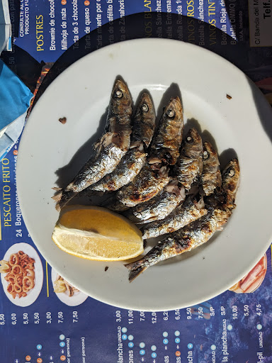 Bueno, después de comprobar reseñas y ver que eran bastante buenas decidí ir a comer con la familia. Lo primero que hice fue llamar nada mas abrieron para reservar ya que había leído en algunas reseñas que se llenaba el lugar, así que lo primero fue reservar. Llegamos 5 minutos mas tarde por tema aparcamientos y sin problemas, desde que llegamos el trato fue muy agradable y correcto y todo el personal que nos atendió en todo momento fue muy amable y atento. El sitio esta bastante bien situado y también tienen bastantes mesas, el servicio de comida fue bastante rápido desde que nos tomaron comanda. Referente a la comida solo puedo decir que estaba todo espectacular, el adobo muy bueno, el pulpo frito espectacular, las gambas al pil pil estaban super buenas, además eran gambas grandes, la rosada frita muy buena también, las berenjenas con miel como a mi me gustan, fritas lo justo para que estén crujientes por fuera y carnosas por dentro, lo mejor y lo quiero destacar, como buen malagueño me flipan los espetos y solo puedo decir que en este lugar he comido los mejores espetos que he probado nunca, por 3 euros 6 SARDINAS y lo pongo en mayúsculas porque eran grandes y tenían bastante carne, además estaban en el punto perfecto de cocción, la verdad de los mejores espetos que he comido jamás. Me quede con las ganas de paella pero agradezco la sinceridad del camarero que nos atendió porque al pedirla nos dijo que no porque tenia bastantes en cola y se iba a demorar mucho, así que agradezco la sinceridad para no hacernos esperar y nos sintiéramos molestos. Lo que menos nos gusto fue los chanquetes, para nuestro gusto estaban bastante fritos y no termino de llenarnos el sabor. Otra cosa que si estaba bastante bueno era la salsa alioli que nos pusieron, realmente nos gusto mucho incluso a mi sobrina que para las salsas en un poco mas delicada. En definitiva recomiendo este lugar para ir a comer, desde luego que pienso volver con la familia o amigos. Los precios son bastante razonables y ahora os detallo para que os hagáis una idea. 1 Berenjenas con miel 1 Adobo de pinta roja 1 Pulpo Frito 1 Rosada frita 1 Boquerones al limón 1 Chanquetes 1 Gambas al pil pil 5 Espetos de sardinas 1 Patatas fritas con huevo 3 Cervezas sin alcohol 1 Agua grande 1 Pepsi cola 1 Zumo de Piña