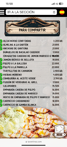 Una idea o sugerencia para la señorita que atiende en la entrada, si nota que los clientes del restaurante no son locales, puede ofrecerles primero ver la cartelera y el exhibidor de la parte autoservicio para que vean que es un Buey de Mar, una Necora o que una tortilla es una masa con harina frita y no la tortilla de patatas que alguien no español puede llegar a asociar. Eso puede ayudar a saber lo que uno lee luego en el menu.