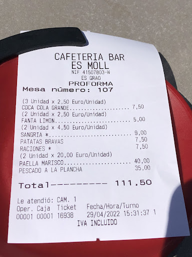 On top of that, the food wasn’t even great. The food was greasy, the fish tasted bitter and the ‘paella de marisco’ was one of the worst paellas my family has ever eaten.