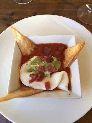 Read moreMenú que deja mucho que desear. Huevos camperos con tacos de jamón y aguacate, como podréus comprobar en las imágenes... mucho título y poca comida. Vendría a ser la típica salsa de nachos del mercadona, calentada, con cuatro, bueno tres, nachos ‘caseros’(que no lo son, claro) y puré aguacate (que también aparenta comprado, porque sabor poco) y un único huevo hervido en sartén, y mal hervido porqué tenía el centro lleno de esa gelatina transparente que queda cuando falta cocción. Una decepción de plato. Ahh!! Y los tacos de jamón horribles, tirosos, sin sabor a nada, un desastre. No lo recomiendo para nada, ¡elegid otro plato, que acertaréis! Otro comensal pidió risotto de calabacín con gorgonzola y bien. Un simple bien. Bien, si. Nada que comentar. Quizás algo más lechoso lo haría mejor, pero bien, simplemente. Pasó demasiado tiempo entre el primero y el segundo. Segundo....pasable. Las costillas de cordero congeladas, claro, muy tirosas, y poco sabrosas. Acompañadas de patatas congeladas, pero bien. El bacalao bueno, sin más, con muuuucha guarnición debajo: pimientos. El aseo de caballeros no cierra la puerta, no se va el agua del lavabo y no hay papel. El de señoras tiene un pestillo roto: cuidado que si entras quizás no sales. Y de postre cremoso de frutos rojos y pudín. El primero cubierto con mermelada de bote sin tratar. Mejorable. Excesivamente dulce: no apto pra hiperglucémicos ni no amantes del dulce. El pudín, poco consistente, pero de buen sabor. Con piñones. Bueno. El servicio nada del otro mundo. Muy mejorable. Un poco de alegría no vendría mal, además van perdidos. ¡Suerte tendrás si te llega lo que has pedido! En verano imagino que a fuera se debe estar de perlas. Pero le falta mantenimiento y cuidado. Una lástima. El interior nada del otro mundo. Muy sencillo. Y la comida, como he dicho anteriormente, muy mejorable. Por el precio que tiene el menú deja mucho que desear. No creo...