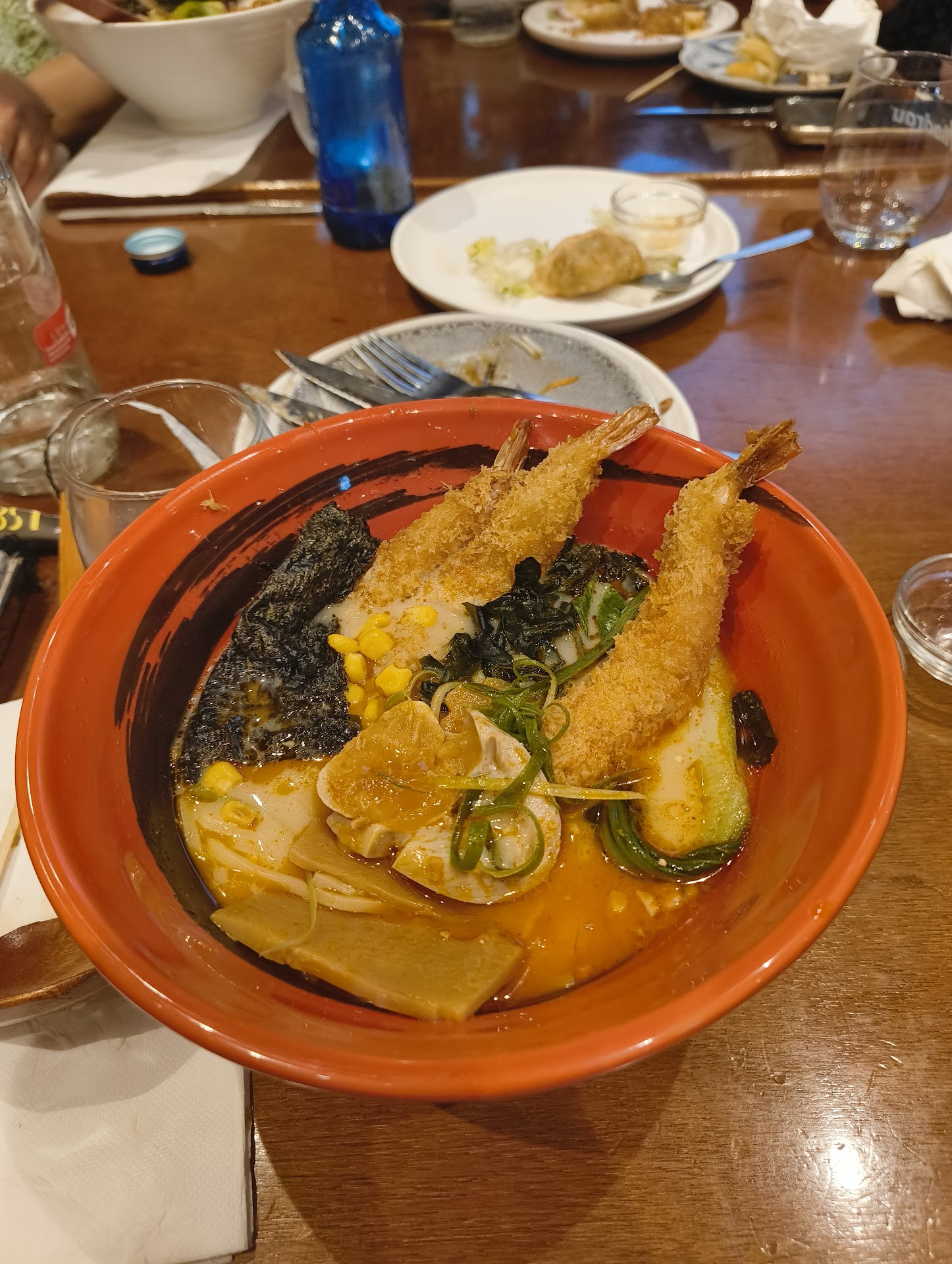 Read moreSi estás acostumbrado a la comida asiática auténtica este no es tu sitio. Puedo entender que a la gente le guste este tipo de comida sobre todo por la cantidad/precio pero no es la experiencia que estaba buscando. Lo que distingue la comida asiática sobre todo la japonesa, es la frescura y lo ligero que es. Pedimos 3 sushis diferentes y los tres vinieron con un montón de cebolla frita encima y con salsa lo que hizo que todo supiera a lo mismo. Los panes bao (pedimos de ternera y de pollo) no son los típicos cocidos al vapor. No es que estuviesen malos pero no son Bao ( ligeros, como nube y cocidos al vapor). La ternera estaba buena. Los Baos tenían consistencia de pan y una vez más grasientos. Las gyozas también son fritas. No te ofrecen gyozas cocidas al vapor pero bueno fue de lo que menos me disgustó. Y por fin me pedí el ramen de langostinos tempura. Me comí los langostinos pero la tempura al estar en el caldo se había quedado hecho una masa ( la combinación no funciona). Los tallarines no eran de ramen, estaban pasados y los sabores del caldo no eran frescos al paladar. Voy a darles 3 estrellas no porque disfruté de la experiencia culinaria (entiendo que hoy la comida es de fusión pero no tanto para no reconocer los sabores auténticos de una cocina étnica) pero el servicio era afable y los ingredientes y la presentación eran buenos. Les sugiero hagan menos frituras y salsas y permitir que los sabores sean...