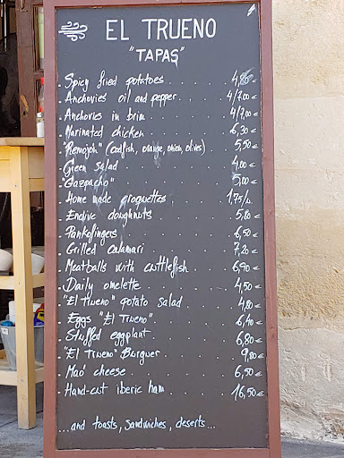 Read moreMuy decepcionante, y eso que hay que reconocer que no tienen mala mano en la cocina. Nos quedamos en la terraza y tardaron bastante en tomarnos nota (un camarero agradable pero algo despistado, y el otro muy seco y poco locuaz). Elegimos tres platos de la no muy extensa carta que nos pareció que no estaba mal de precio... Hasta que llegaron sorprendiéndonos por la mínima cantidad que había en ellos. En primer lugar los pankofingers, el plato menos escaso, son una especie de fingers de pollo con dos salsas (una de ellas mayonesa básica) que no estaba mal. En segundo lugar calamares a la andaluza, que fueron 4 contados, buenísimos, pero también con mayonesa básica. Y en tercer lugar los huevos "el trueno", una mini cazuela sin fondo con dos huevos pequeños, patatas paja y algo de carne, de buen sabor, aunque con muy poco que probar. De nuevo a la hora de pagar costó que llegara la cuenta, y costó que nos cobraran. Véase como curiosidad que los precios en la cuenta son 10 céntimos más caros que en la pizarra. La terraza está bien y con buenas vistas, aunque poco a poco se la fue comiendo el sol y, a pesar de tener sombrillas de sobra, tal y como estaba todo dispuesto era imposible tapar las mesas. En definitiva, 30 euros que nos dejaron con hambre y que ni cuentan con un servicio decente que merezca...