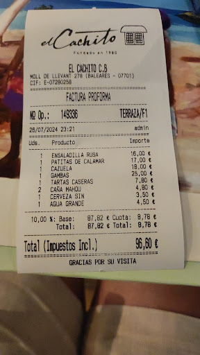 Read morePaseando por el puerto y buscando un lugar donde poder comer ,me encontré con este "cachito" diferente a mas de lo mismo. Toda la avenida esta abarrotada de restaurantes donde el turista de a pie encuentra su lugar en la exclusividad de la masa. Este no es el caso de Cachito. Algo diferente dentro de lo estándar. El mimo y cariño de este estableceminto se percibe ya no solo en su decoración de colorido con tonos pasteles , que dan pie a saborear matices mediterráneos , sino que tambien en su comida con una carta corta pero con selección mimada ,gran sabores y texturas muy diferentes al paladar. A eso se suma las sonrisas del "servicio" .Su acogedora atmósfera ,su trato ,que hace sentir que llevas ahí toda la vida , hace de la experiencia en su conjunto ,un cachito de autenticidad personalizada . Encantado de poder participar en tan...
