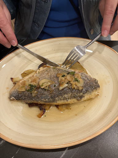 Read moreWe visited on a Thursday evening and were unfortunately quite disappointed. The menu was rather limited, particularly in terms of main courses. We chose the sea bream, but both fillets were full of bones, making them difficult to enjoy. They were served on a bed of overly oily crispy potatoes—so much so that my mother experienced stomach discomfort afterwards. The portion size was modest, with no vegetables or salad to accompany the dish, which left the plate feeling incomplete.