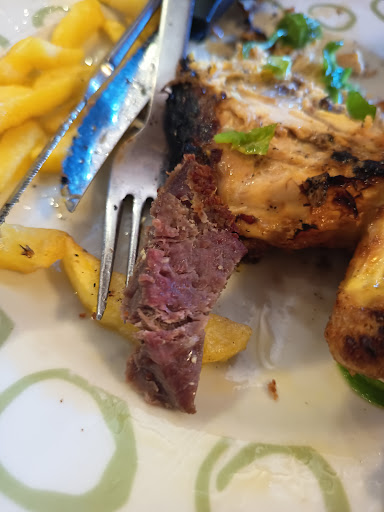 Tras ello, fuimos asignados una mesa pasados unos 20 minutos aproximadamente. Y aquí la primera sorpresa: no tienen menú, solo carta. De acuerdo, ningún problema, siempre y cuando la comida esté buena. Pedí escudella y bistec a la brasa. Todo habiendo preguntado antes por mi intolerancia (lactosa), comentario del cual la camarera dijo que no había problema, solamente la guarnición del bistec, que sería cambiada.