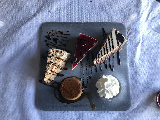 Read moreJunto a la piscina municipal, tras una puerta que no nos hace creer lo que allí esconde, se encuentra este restaurante Totalmente recomendad. Comimos estupendamente con una atención profesional y atenta. Todo servido en recipientes de mármol que me encantó. Ensalada, jugosos buñuelos de bacalao, crepés salados de jamón y queso, tostas de ibérico y huevo, solomillo a la pimienta y surtido de postres. Espectacular y...