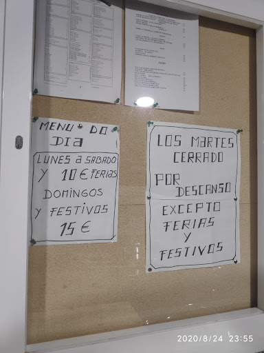 Fuimos porque nos lo habían recomendado. Al entrar ya nos llamó la atención la suciedad del suelo, pero como habíamos reservado la mesa, nos quedamos. Los dueños intentaron ser agradables y nos ofrecieron menu para cenar. Las rabas parecían palitos de pescado congelados, al igual que las croquetas, que parecían las congeladas del súper. La ensalada y los callos si estaban buenos. La ensaladilla y xoubas correctas y las chuletas de ternera poco frescas. La tarta de queso parecía de las echas con sobres...intragable. Las chuletas enormes y la ración de patatas también. Nos sentimos como si quisieran llenarnos a patatas fritas en vez de ofrecernos productos de calidad. La mitad de nosotros pedimos medio menú o dos primeros platos. Entre los 8 bebimos 2 aguas. Ningún otro postre o café. A la hora de pagar nos cobran 15€ a cada uno. Nos quejamos porque el cartel de fuera decía 10€ (era lunes), la calidad de los platos no se correspondía, y mitad de la mesa había pedido medio menú. Le sugerimos a los dueños que fuesen más claros a la hora de dar información para evitar confusiones. Obviamente, si nos hubiesen dicho que eran 15€ y no 10€ y que nos cobrarían lo mismo por un primer plato que por el menú entero no nos habríamos quedado. No sé disculparon por el cartel o por no mencionarlo cuando preguntamos si podíamos pedir medio menú. Sino que se pusieron a discutir. Fue una situación muy desagradable. Finalmente, nos ofrecieron un reembolso de 40€ y nos quedamos con 20. Lo que más nos molestó fue la actitud deshonesta y el discutir en vez de admitir que la información no estaba clara. Desde luego lo que comimos no vale...