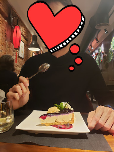 El flan de matcha es delicioso, la decoración es bastante bonita y atractiva, parece un restaurante de 5 estrellas, solo que el plato es un poco pequeño, por lo que es un poco difícil al comer.