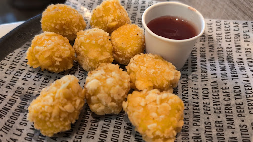 Read moreSuper cheap Americanized menu in European portion sizes. I ordered the Gouda Cheese Bites which were served with a marmalade sauce and they were decent in taste. The hotdog and cheddar sauce was so basic and nothing to write home to mom about. The best feature here is the speed of food coming out the window, less than 3 minutes and the servers are absolutely on top of table service and cleaning the restaurant. The menu is very organized and has hundreds of small things so a great way to build a meal a la carte and sample. Great location and better alternative than McDonald's 🤮 or KFC 🤢 or any other lame American chains in the area. Support small...