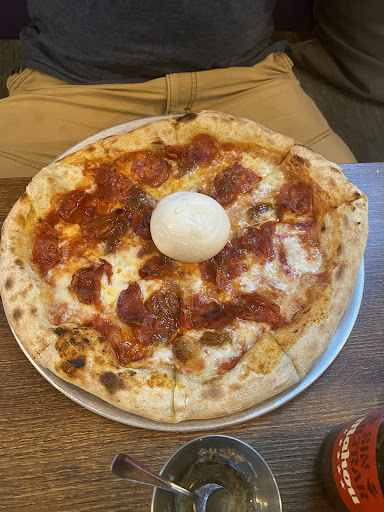 Read moreFantastic pizza, a great environment, and a friendly wait staff. We enjoyed a cachi pizza and a margarita pizza. The cachi is basically a cheese pizza with spicy pepperoni and a giant cheese ball on top. The margarita is a cheese pizza with basil. Both on thin crust and each delicious in their own way. The restaurant also has a spicy oil that you can drizzle to complement the pizza. I suggest you only try it if you enjoy spicy foods.