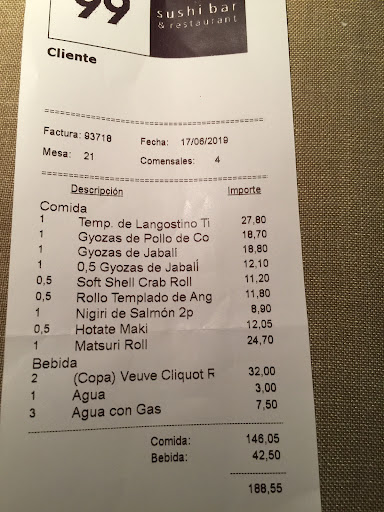 Somos cliente asiduos a Sushi99 en Moraleja y en Eurobuilding. Cuando no hemos podido reservar con tiempo y nos quedamos sin mesa, solemos ir a Ponzano, pero en esta ocasión sólo quedaba para Hermosilla y como no habíamos estado allí, decidimos probar. Nuestra opinión se basa en la comparación de las vivencias entre los locales de esta cadena y, por ende, eso no debe mermar al lector respecto de la opinión sobre que la calidad de los productos, en niveles generales, siempre es excepcional y que, sin duda alguna, ofrecen unos de los mejores productos en su campo, en Madrid. Dicho esto y, a tenor de la decepción a mi entendimiento, sorprendente, que tuve al ir a este local, he querido hacer esta reseña pensando más en que la dirección tome nota y que, si como nosotros, eres usuario de los sushi99 que mencioné al principio, sepas que no vas a encontrar lo mismo. En primer lugar cabe destacar que, la iluminación y ambientación por dentro es diferente, no me refiero a que las mesas sean diferentes etc, sino que el ambiente calmado/elegante/privado/selecto y refinado, no tiene nada que ver: con una enorme diferencia de iluminación, encontramos un local que dispone de materiales que resaltan una iluminación que, para los que estamos acostumbrados a la baja intensidad de los otros locales, hace un choque que a nuestro parecer, resulta desagradable. Los detalles no se cuidan como en los demás locales, por ejemplo: el mantel estaba manchado, los edamames que ofrecen al inicio, extremadamente salados, la colocación de los platos no se hace correcta y te sirven/cambian, dejando los platos doblados, rellenan el agua tocando el vaso, el servicio va acelerado tanto en atención como en servicio, etc. Entiendo que estas apreciaciones para muchos será una banalidad, pero en Sushi99 no sólo estás pagando el producto, sino el tipo y etiqueta del servicio, la ambientación y todo aquello que define la experiencia. Los camareros tienen un lenguaje corporal que deja muchísimo que desear, no cuidan las formas y se relacionan con el cliente de una forma invasiva y demasiado coloquial, incluso su propia vestimenta no se aprecia tan cuidada. Vimos incluso cómo, lo que entendimos como un jefe de sala, le llamaba la atención a un camarero por su falta de diligencia, sin tener en cuenta de que estás rodeado por clientes y debes cuidar esos gestos y comunicarte de una forma más privativa con el trabajador; una de las camareras se desplazaba por el local a casi ir dando saltitos....No voy a entrar en el perfil del cliente que allí vimos entrar porque eso no es culpa completamente del local, pero sí advertir que, de lo que haces, así te rodeas. Respecto a la comida, nos sorprendió que el cocinero que debió estar en nuestro día, tenía tendencia a elaborar los platos con toques más intensos, por ejemplo: los langostinos en tempura que siempre los pedimos, no fuimos capaces de terminarnos las hojas de verdura que vienen y que, tanto nos gustan, porque estaban muy fuerte de aliño. Mismamente ocurrió con una ensalada de algas que tomamos. Respecto a las piezas de sushi, entendemos que existan diferencias, pero no lo que vimos: en los niguiris, la cobertura de pescado es muy gruesa (esto deben cuidarlo, se convierte en producto tosco), y en las variantes calientes, se deja la superficie demasiado cruda, incluso en el de panceta que es un común nuestro, la panceta estaba completamente gomosa, cosa que nunca nos había ocurrido. Creo que el personal de sala debería aprender a mantener un estándar formal adecuado, indistintamente que tengan clientes que actúen de forma más cercana y muy coloquial; hay momentos que parece que estás en un sitio común. Nuestra conclusión es que Sushi99 Hermosilla sólo llama al cliente por su producto pero no por su experiencia y que, comparativamente a los demás, está a la cola y con distancias. El personal debería aprender a mantener un estándar de formalismo, adecuado, indistintamente de clientes que actúen de forma excesivamente cercana y coloquial. Nosotros entendíamos que Sushi99 estandarizaba sus formas en todos...