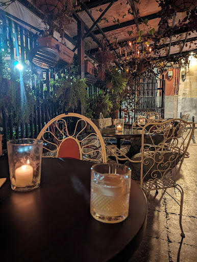 Read moreOne of my favourite places to visit when I'm in Madrid. I was drawn to it one night by the beautiful garden. The cocktails are really good, and although at first glance just a tad bit pricy, the price is absolutely justified by what you get - the fluid to ice ratio is perfect and the drinks very well thought out. The card is mostly original and somewhat less common cocktails, but as far as I know, you can also order whichever drink you want. My favourites are Bison in the Rye, Necromancer and El Clandestino. The garden is very cozy and full of plants, inside it is also very well decorated and the ambience is perfect. You should know that the place serves only cocktails after 18h, before then you can also get beer or wine. Warm recommendation for anyone looking for a 'hidden gem'...