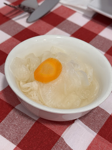 Comenzamos con el nabo encurtido, difícil de encontrar en Madrid, cuyo sabor auténtico nos confirmó que estábamos en el lugar correcto. Luego llegaron las vieiras a la parmesana, perfectamente gratinadas, con un equilibrio delicioso entre mar y queso.