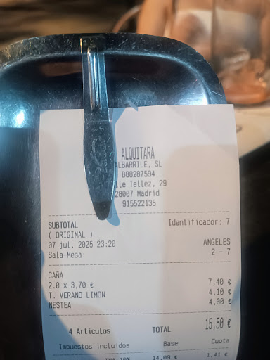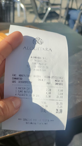 Hola, quiero escribir esta reseña para romper una lanza por la terraza la Alquitara, ya que veo muchas opiniones quejándose del precio y efectivamente puede ser un poco más caro que otros bares del barrio. Pero en mi opinión dichos precios son muy correctos si atendemos a las 4 palabras del título de la reseña. Terraza: pocas en toda la zona, por tamaño, espacio y ubicación privilegiada. Vinos: si eres amantes del vino, no encontarás otro bar en todo el barrio con la variedad y número de reseñas que en la Alquitara. Se nota la pasión de los dueños por los buenos caldos. Un lugar donde salir de los típicos vinos de chateo de todos los lados, siempre los mismos. Raciones: ocurre algo parecido que con los vinos, si te apetece probar cosas diferentes a parte de las raciones clásicas (huevos rotos, croquetas, etc.). Aquí podrás probar también raciones originales (tartar de atún, saquitos de queso y sobrasada, tomate rosado, etc.), con excelente sabor, calidad de los productos y presentación. Mención a parte para su hamburguesa de las mejores que he probado (y os puedo asegurar que he probado unas cuantas a lo largo de mi vida, soy fan. Servicio: desde que vengo por este bar hace ya unos 8 años, el servicio ha ido mejorando muchísimo y creo que actualmente cuentan con un magnífico equipo capitaneado por Ángeles. Ofreciendo a la clientela un servicio profesional, cercano, amable y muy atento. Con todas estas cualidades comentadas, creo que queda claro que en mi opinión, la Alquitara es la mejor terraza de la zona. Pudiendo competir con la mayoría de las existentes en la zona de Menendez Pelayo, Ibiza, etc. Seguiré siendo un...