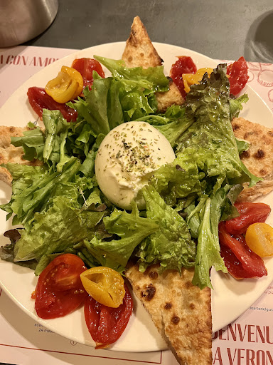Read moreWe stopped in for dinner around 8pm and got a table. It was in the back and in a quieter area. Cute place. I like the placemat menu combo (food on one side & drinks and desserts on the other). We started with a bottle of vine and then had the burrata salad and the spicy salami pizza with Gorgonzola. The salad was tasty. I enjoyed the piping hot pieces of focaccia with the burrata and full of flavor tomatoes. Good portion of creamy burrata. I could have used a touch of olive oil drizzled over but ate the whole thing. 🙂 The pizza was quite good. The tomato sauce was my favorite part, which is rarely the case. Spicy and fresh. The crust was the perfect combo of crusty and chewy. They had many pizzas that sounded good. I am going to go back and try more.