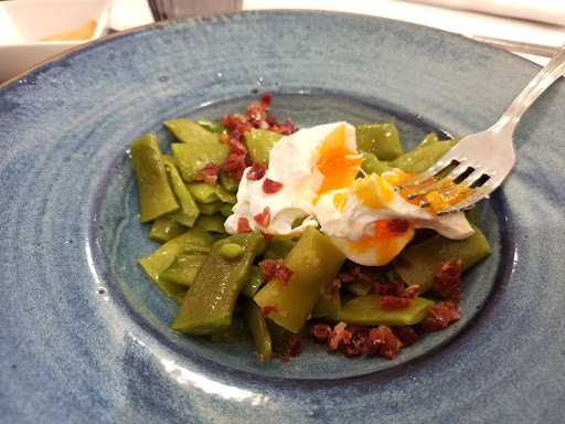 Read moreUna y no más. Media hora para tomar la comanda, no pueden dar tanto servicio (y eso que ya cuando entramos estaba medio vacío). Pedimos ya bebidas y resulta que las raciones que tienen en menú a la vista no aplican... venga, tragamos y vamos el menú (26 eurazos -es contundente eso sí-) que ya hemos pedido bebidas. Cuando lo pedimos para compartir... resulta que hay un suplemento de 4.5 euros. ¿En base a qué 🤣? Por compartir? Qué atraco por la cara es éste? Además no viene en carta, por lo que no se puede cobrar*. Cuando se lo digo, de pronto nueva versión: no se puede compartir menú (cuando ya me lo ha servido) pero me hacen un favor, que si es que el cachopo es muy caro, que sí pueden cobrarme suplemento...