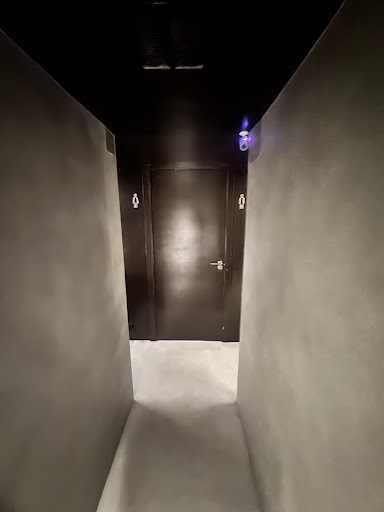 Ambiente formal y acogedor, luces tenues que acertadamente envuelven el espacio, un estilo discreto pero a conciencia concretado en paredes grises y perfiles oscuros en contraste con blancos y crudos donde el color está prácticamente eliminado, prescinde absolutamente de aderezos artificiosos que distraigan de lo realmente importante, tan solo se puede observar una aparato que no logro a identificar como extractor/aire acondicionado o similar, en cualquier caso, un mina insultante al local que por todo lo demás, impoluto.